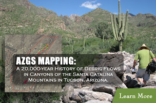 A new report by AZGS geologist Ann Youberg is being released in the morning with maps of debris flow deposits in 15 canyons along the mountain front. The report includes 11 digial 1:6,000 scale maps on CD.