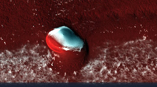 These are amazingly detailed pictures of Mars but they are spectacularly beautiful images. [right, a crater on the north polar layered deposits]